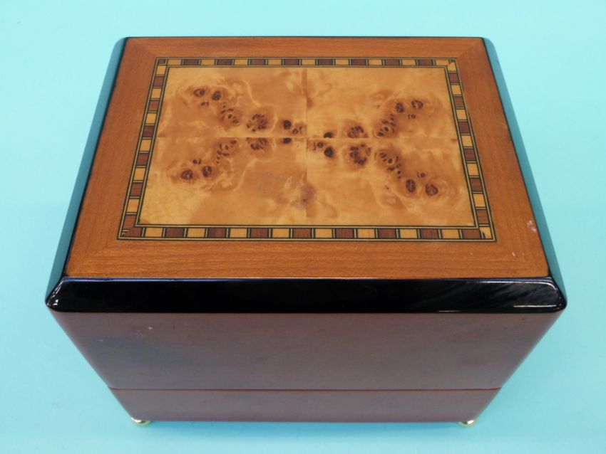 Rapport automatic wristwatch electronic winding case with faux birds eye maple lid