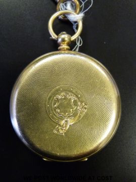 J Lannier Swiss 18ct gold pocket watch with inset subsidary seconds dial and black Roman numerals to the white enamel face and engine turned case marked K18, case diameter 44mm.