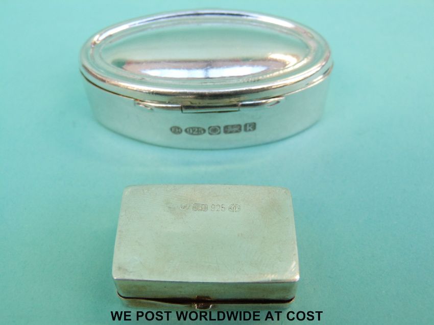 Two modern hallmarked silver pill boxes, larger length 5cm