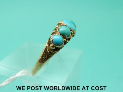 A Victorian ring set with five turquoise cabochons (size P)