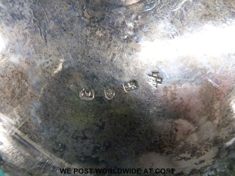 A Georgian hallmarked silver wine coaster or pierced basket with blue glass liner, London 1769 maker Jabez Daniell & James Mince, diameter 15.5cm (weight without liner 326g)