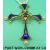 A 15ct gold cross pendant designed by Fabergé, with enamel decoration and set with a central square cut sapphire, diamonds and seed pearls