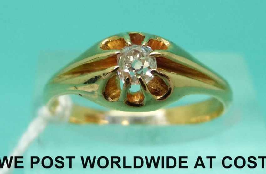 An 18ct gold ring set with an old cut diamond (size O)