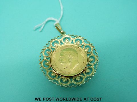 A 1913 gold full sovereign in 9ct gold mount (10.2g)