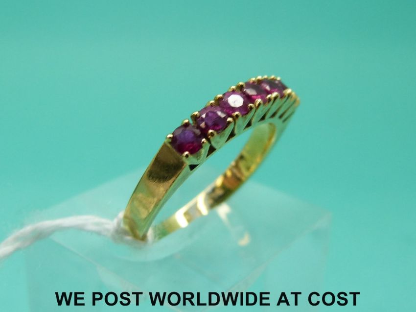 An 18ct gold ring set with rubies (size P)