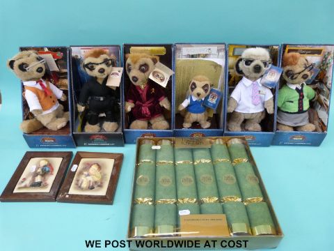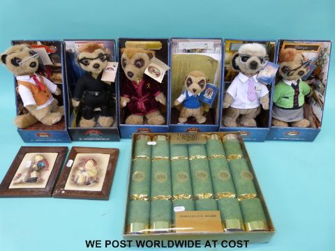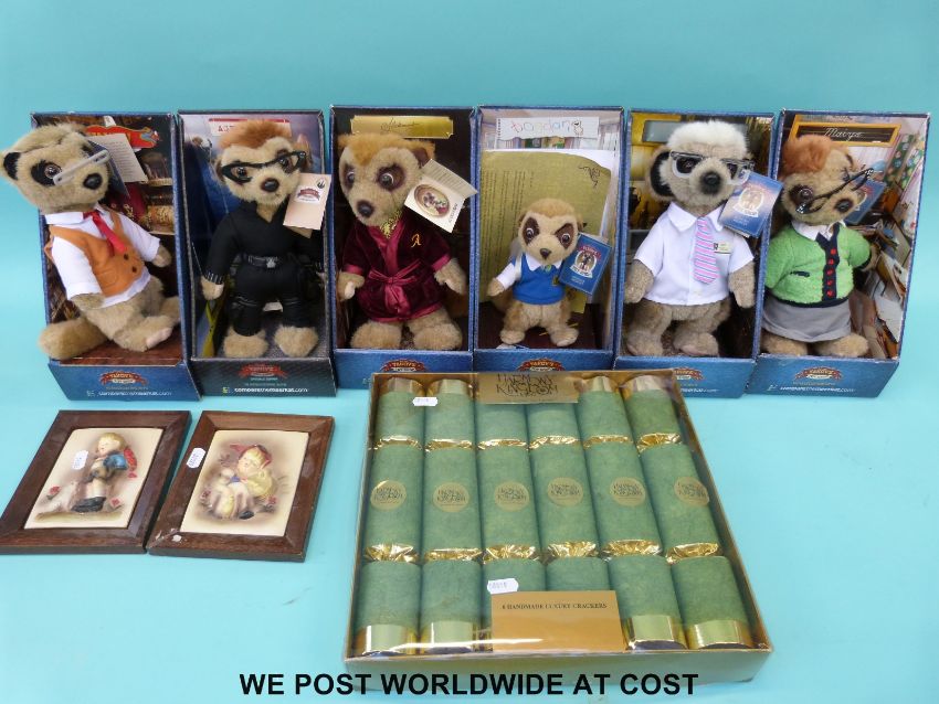 Seven Compare The Market meerkats together with a boxed set of Christmas crackers, ceramic jug, Hummel plates etc