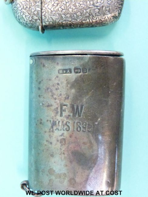 Three late Victorian hallmarked silver vestas, largest height 6cm