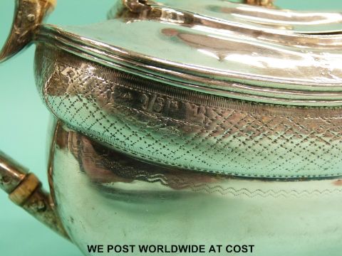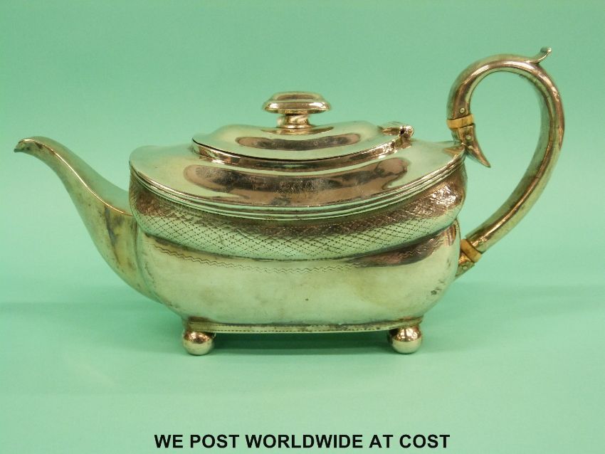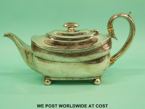 A Georgian Irish hallmarked silver bachelor's teapot, length 24cm, Dublin 1808, maker's mark rubbed (418g all in)