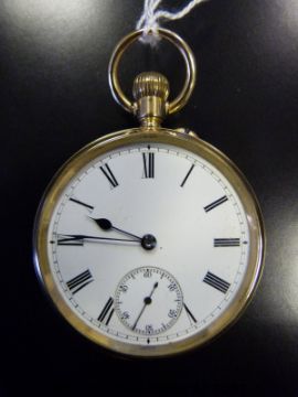 An 18ct gold Chester 1901 hallmarked gentleman's open faced pocket watch, the keyless movement stamped 34577, the enamelled dial with Roman numerals, secondary seconds and blue spade hands