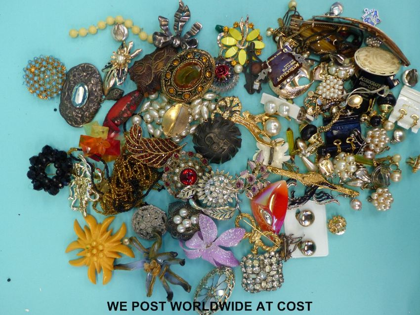 A large collection of costume jewellery to include various brooches, tigers eye pendant, beads, etc.