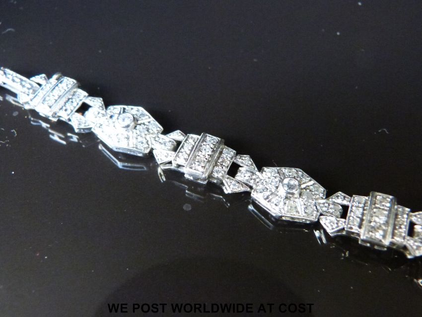 Art Deco platinum ladies cocktail wristwatch inset with 141 old cut diamonds, case size 14x20mm, 23.4g.