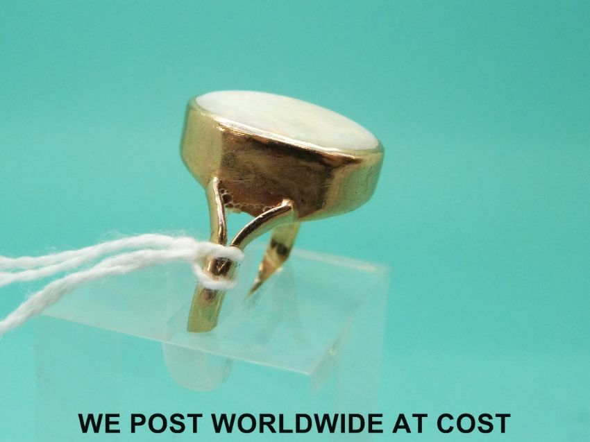 A 9ct gold ring set with a large oval opal cabochon (size Q)
