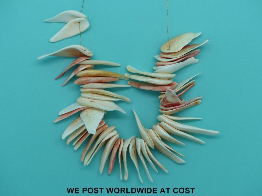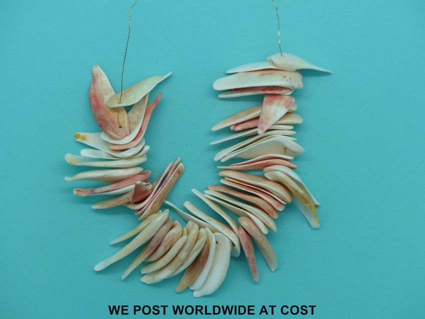 A shell necklace made up of over 50 irregular pieces.