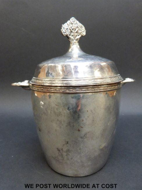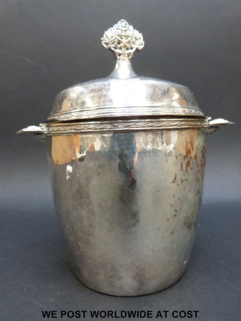 An Artificers Guild, 9 Maddox Street, London, Arts & Crafts twin-handled hammered tea caddy impressed 2022, possibly by Edward Spencer (height 18cm)