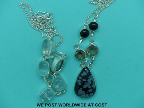 Nine silver pendants set with labradorite, a pair of moonstone earrings etc