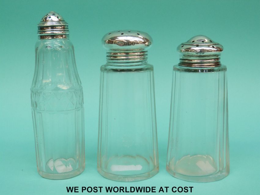 Three silver topped peppers/casters