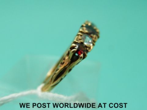 A 9ct gold ring set with alternate garnet and clear stones (size K/L)