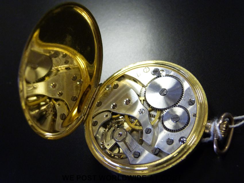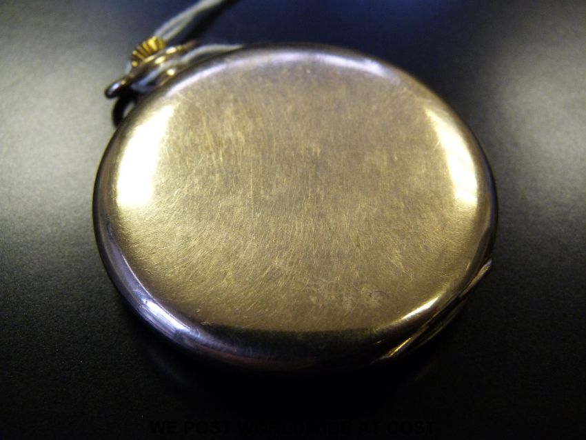 Tempo Swiss made rolled gold gentleman's slim cased pocket watch, with engine turned dial and stylised Arabic numerals, c1920, case diameter 45mm.