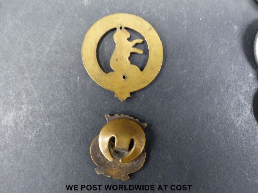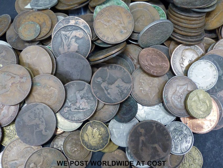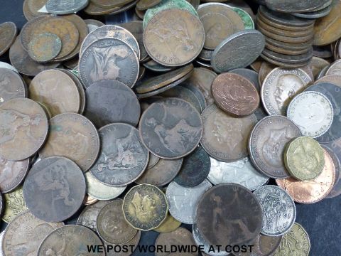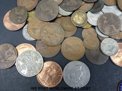 A collection of sundry UK coinage to include some modern crowns etc, together with some world coins with small silver content, 1857 Bank of Upper Canada one penny token, South Africa half crown 1920 etc, a Scottish Sans Peur badge and Merchant Navy sweetheart brooch