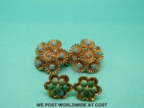 A pair of 9ct gold earrings set with turquoise and a further pair