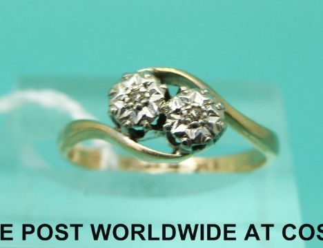 A 9ct gold ring set with two diamonds in a platinum twist setting (size K)