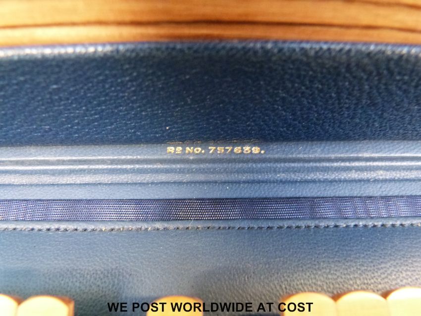An Asprey bezique set in blue leather-covered case with hallmarked silver clasp, London 1938