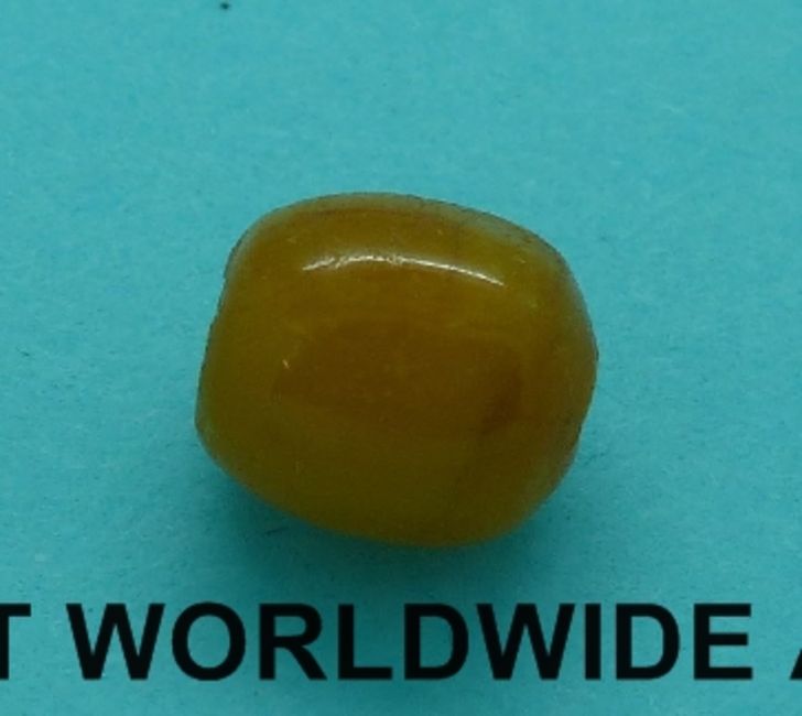 An amber necklace of 34 butterscotch coloured beads, all approx 13x9mm, 50cm long, 18g.