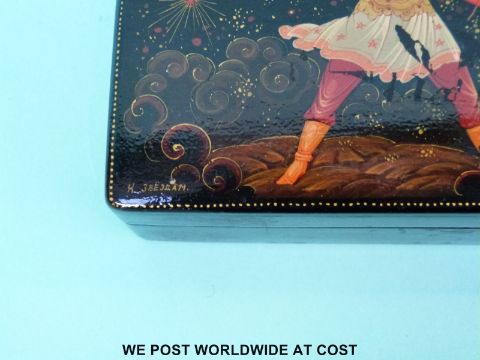 Three signed Russian lacquer boxes (largest W16cm)