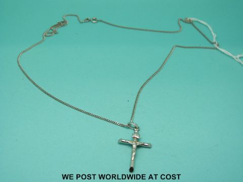 A white metal chain and crucifix marked 375 (3.7g)