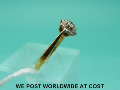An 18ct gold ring set with diamonds in a cluster (size M)