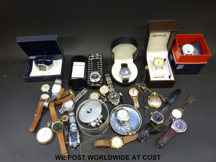 Twenty-seven various ladies and gentlemen's wristwatches, one marked Gucci, some in original boxes.