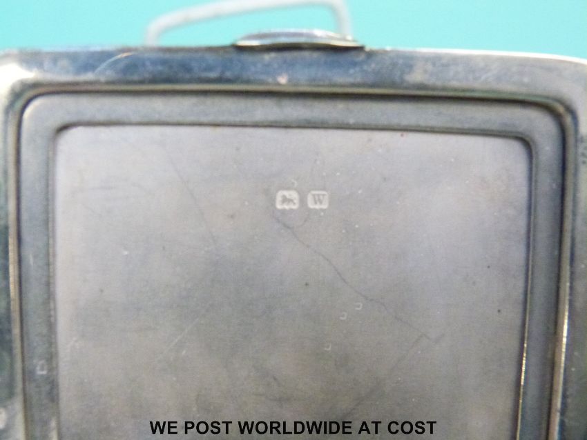 A hallmarked silver powder compact with engine turned decoration (86g)