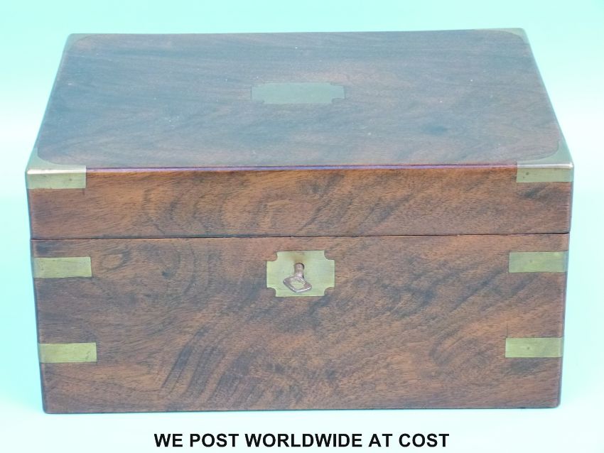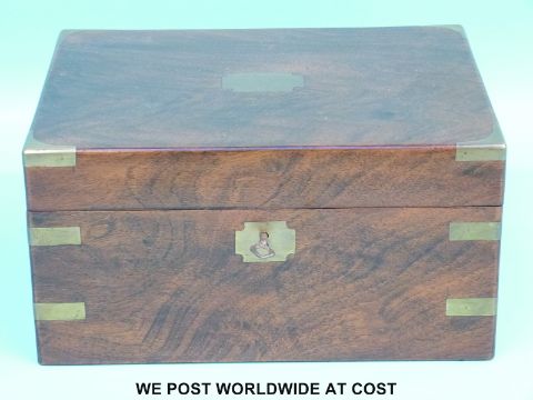 A 19thC mahogany brass bound and inlaid writing slope (W30.5xD23xH16cm)