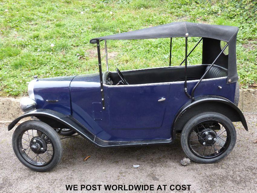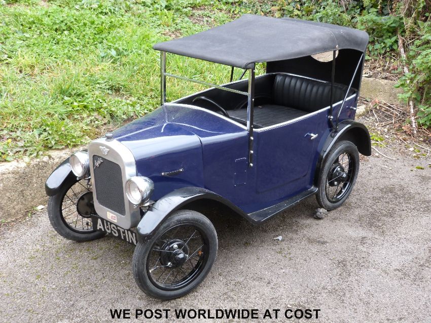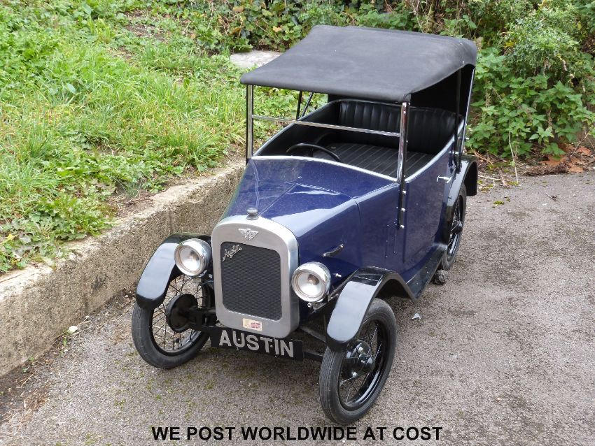 Austin 7 junior battery operated child's car with retractable hood, lights and spare wheel, 130 x 65cm