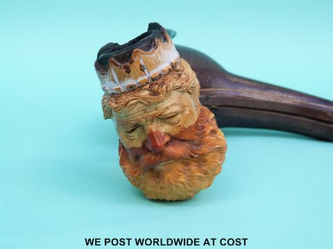 A Meerschaum pipe in the form of an elderly gentleman with crown, in original case marked Cambridge