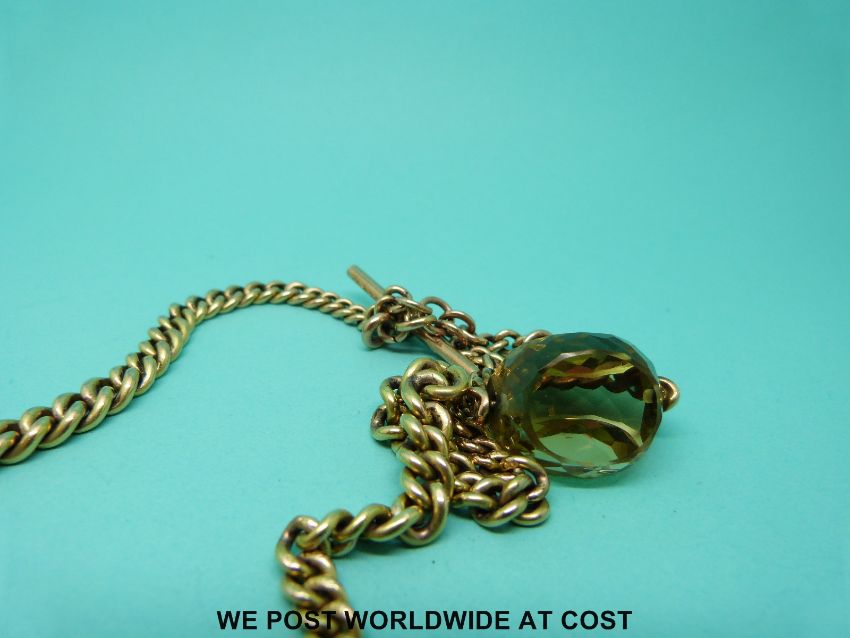 A graduated 9ct gold double Albert with a citrine fob.