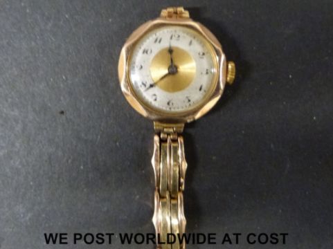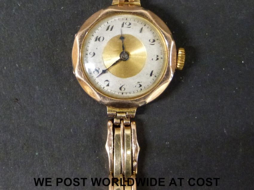 A 9ct gold Edwardian ladies watch with two tone dial.