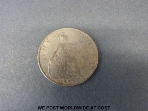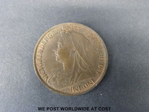 An 1895 Victorian veiled head penny with lustre, VF, trident 2mm from "P"