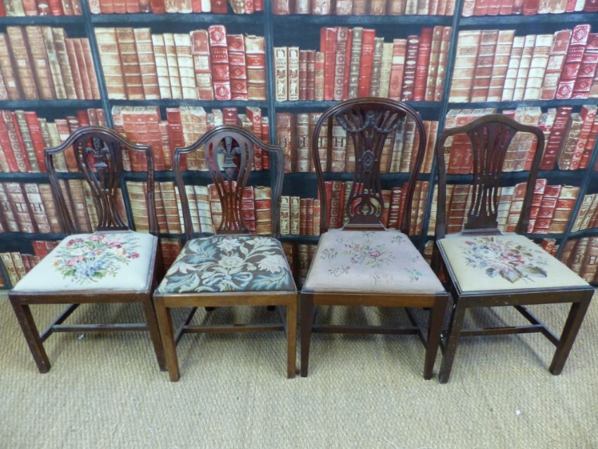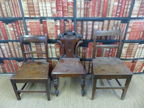 Seven 19thC chairs including a mahogany shield back chair with carved surround