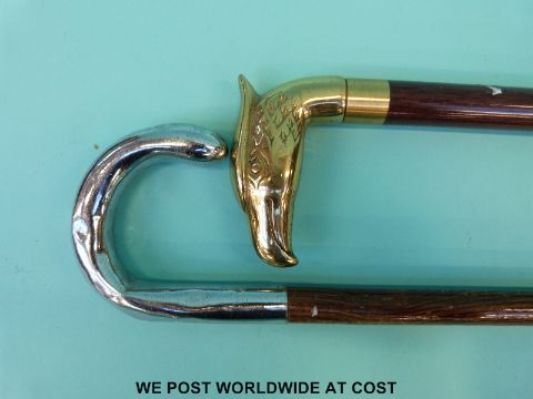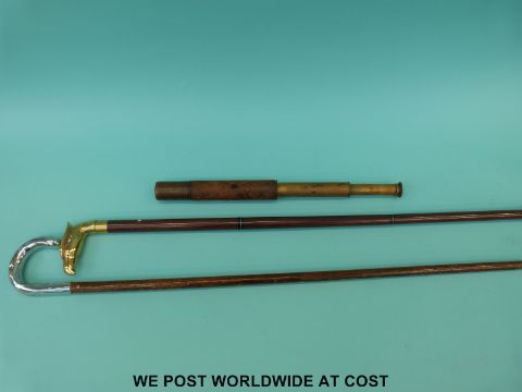 A two draw telescope and two walking sticks