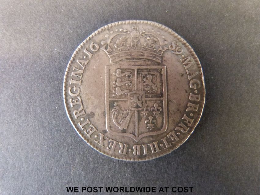 William and Mary half crown 1689, better then very fine