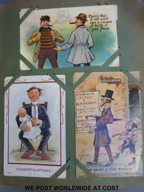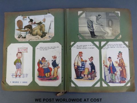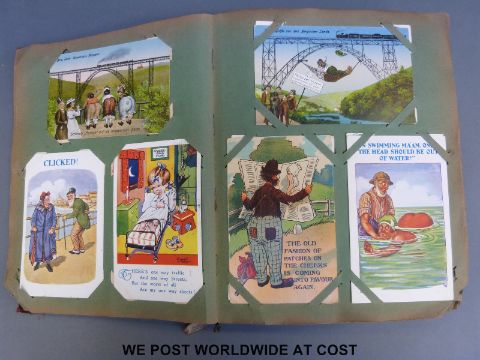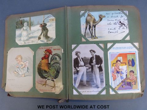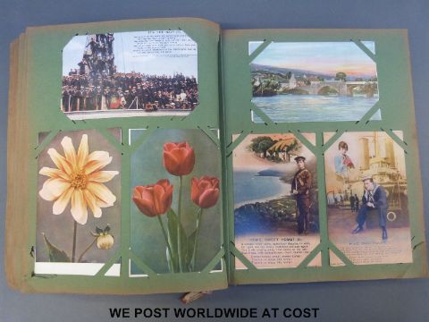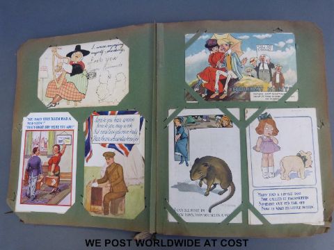 Edwardian/WWI postcard album containing 500 plus cards including humourous, WWI, naval, airship, topographical etc.