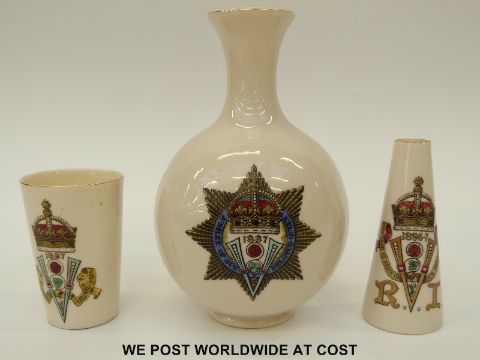 Three items of Goss Queen Victoria jubilee items to include a large 1887 vase, 1887 cup and a 1896 -97 vase (largest 19cm)