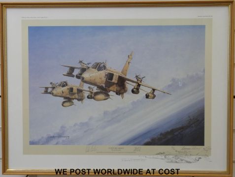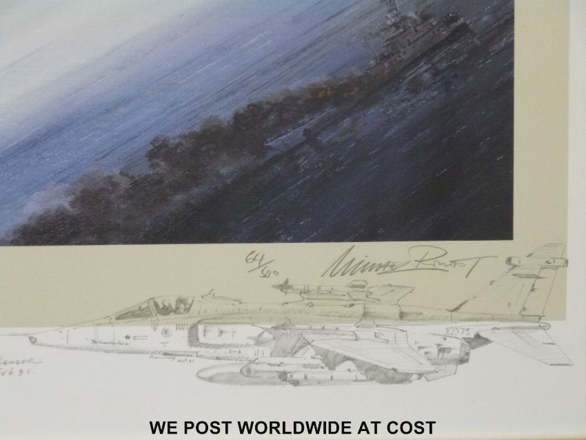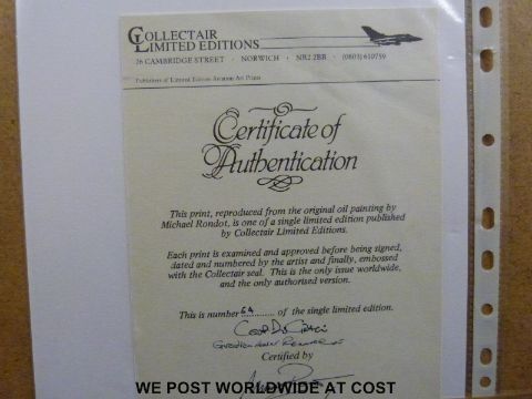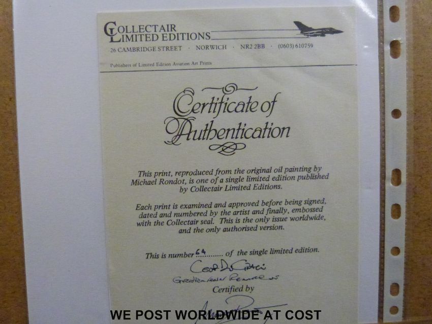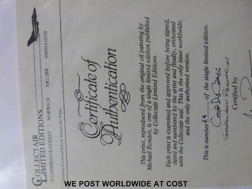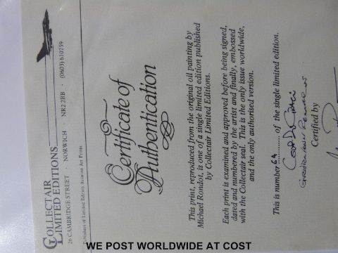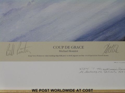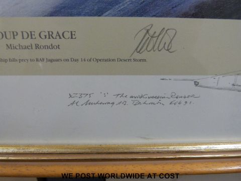 Michael Rondon signed limited edition (64/500) print 'Coup de Grace' with pencil vignette lower right and signatures of the pilots, certificate verso (39 x 52cm)