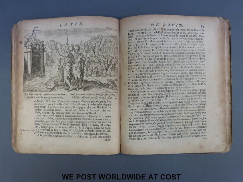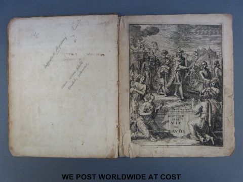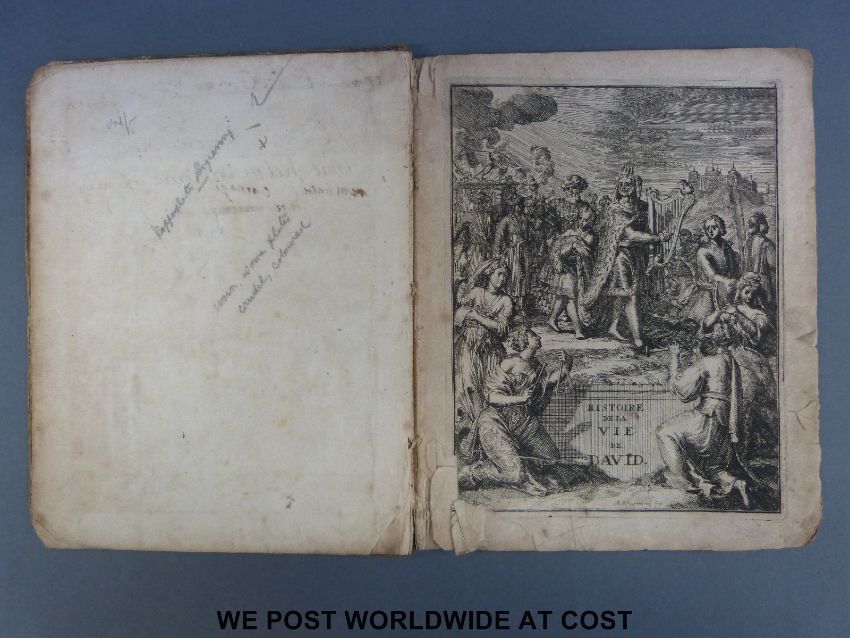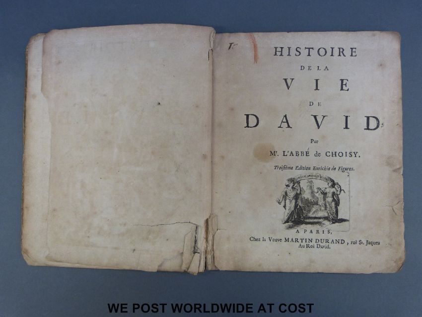 Histoire de la Vie de David by L'Abbe de Choisy, together with Paris by Martin Durand (c1720 with 1728 inscription). Many half page vignettes in Renaissance style, early decorated boards