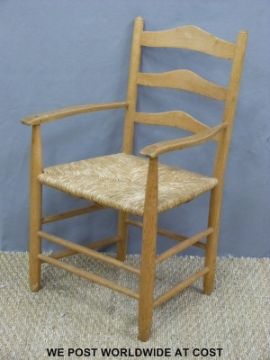 An Arts and Crafts Neville Neal rush seated peg jointed ash ladder back child's chair