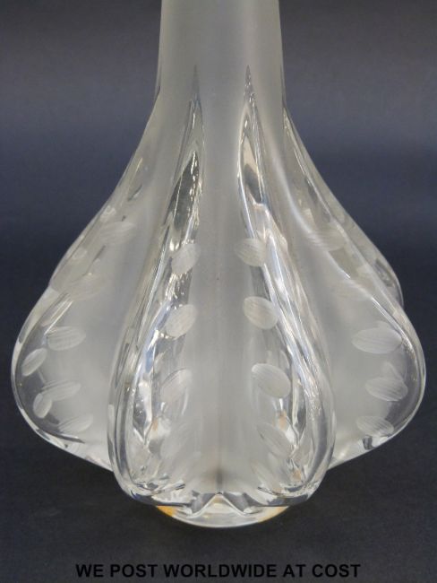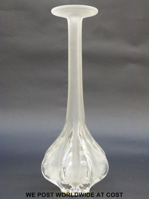 Lalique Claude clear and frosted glass bottle vase with engraved decoration, signed to base Lalique France, 34.5cm tall, in original box
