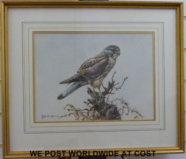 Edwin Penny watercolour 'Kestrel' signed lower left, labels verso (26 x 36cm)