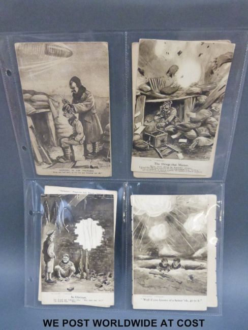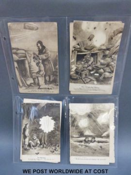 A collection of postcards including First World War examples and other scenes including Bruce Bairnsfather, many unscripted
