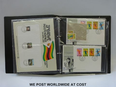 A stockbook of Rhodesia and South Africa stamps and an album of Rhodesia first day covers